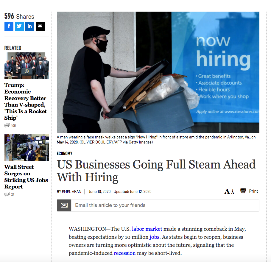 Our quick rebound actually drew national attention last week. The Epoch Times wrote an article featuring our success story, and I wanted to share it with you: