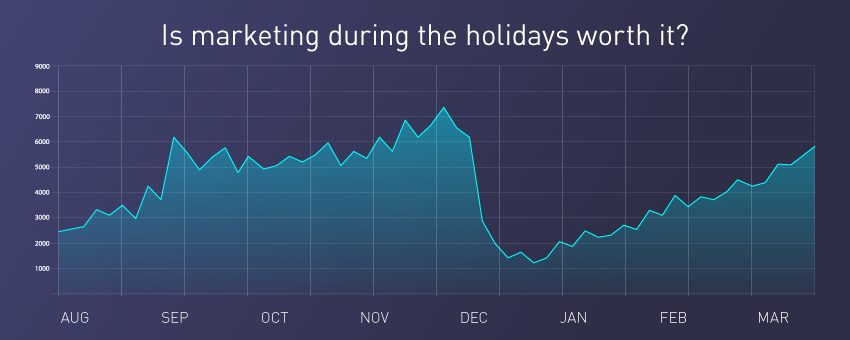 If you stop for the holidays, you have to rebuild the marketing snowball in January and build up your campaign’s momentum again.