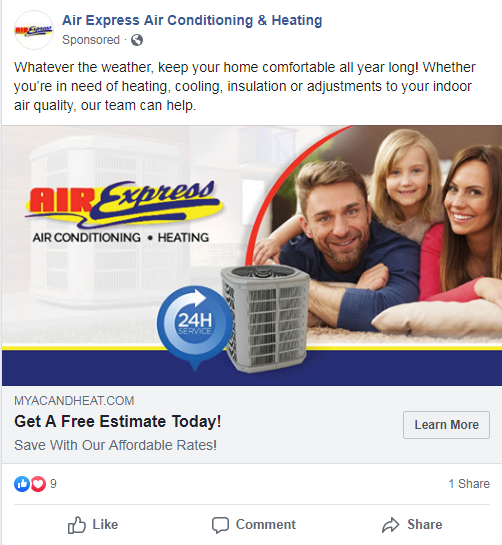 This HVAC company received 50 new clients per month with their heating and cooling marketing campaign. Business is non -stop and Air Express credits the success of the campaign to the online advertising in addition to the great offer!