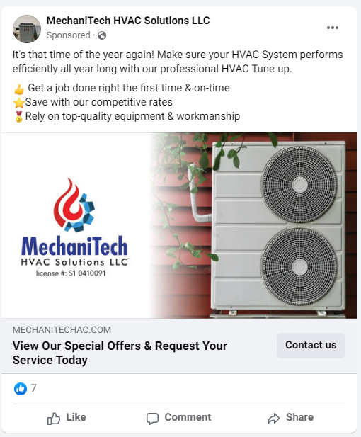 MechaniTech mailed 3,000 postcards to a consumer mailing list that was made up of owners of old condos that likely needed new HVAC equipment. Each mailing included about 998 cards. They also ran follow-up digital ads on Facebook, Instagram, and Google as a part of an Everywhere Small Business campaign.