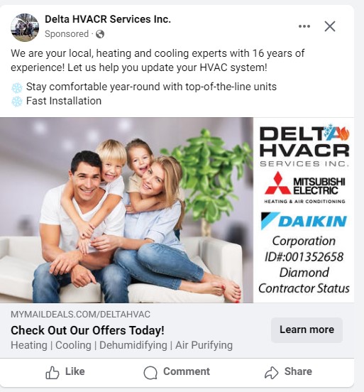 Delta HVACR Services is a heating and cooling expert in Westfield, MA. When they started to look into advertising plans, they worked with a company that ran social media ads, but they didn’t achieve very good results with them.