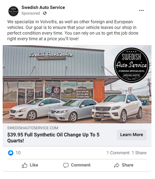 Swedish Auto Service specializes in foreign car repair in Austin, Texas. When they first came to us in October of 2020, they needed help locating more luxury vehicle owners and came to us for ideas.