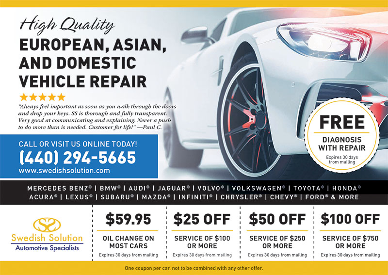 This luxury automotive repair shop, Swedish Solutions, wanted to spread the word to local luxury car owners about their auto repair services. They came to us to utilize our bulk mail campaigns in order to do so.