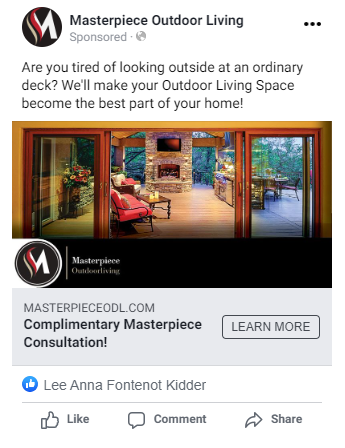 Masterpiece Outdoorliving had an awesome response to their direct mail and digital ad campaign! They tracked 75 calls and converted 10 into new jobs, which resulted in $2 million in revenue! This construction and remodeling business also received 5,000 clicks to their website from combined Google and Facebook ads using PostcardMania’s Everywhere Small Business product. Masterpiece Outdoorliving had a whopping 2,644% return on investment!