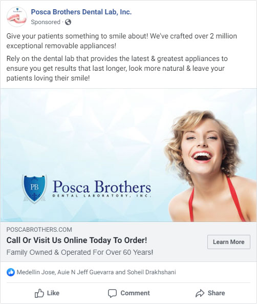 Being the oldest active manufacturers of removable prosthetics in the country, Posca Brothers, wanted to get their products in more dental offices and land some big-time corporate accounts, They came to us to utilize our bulk mail campaigns integrated with digital marketing efforts to bring in more clients.