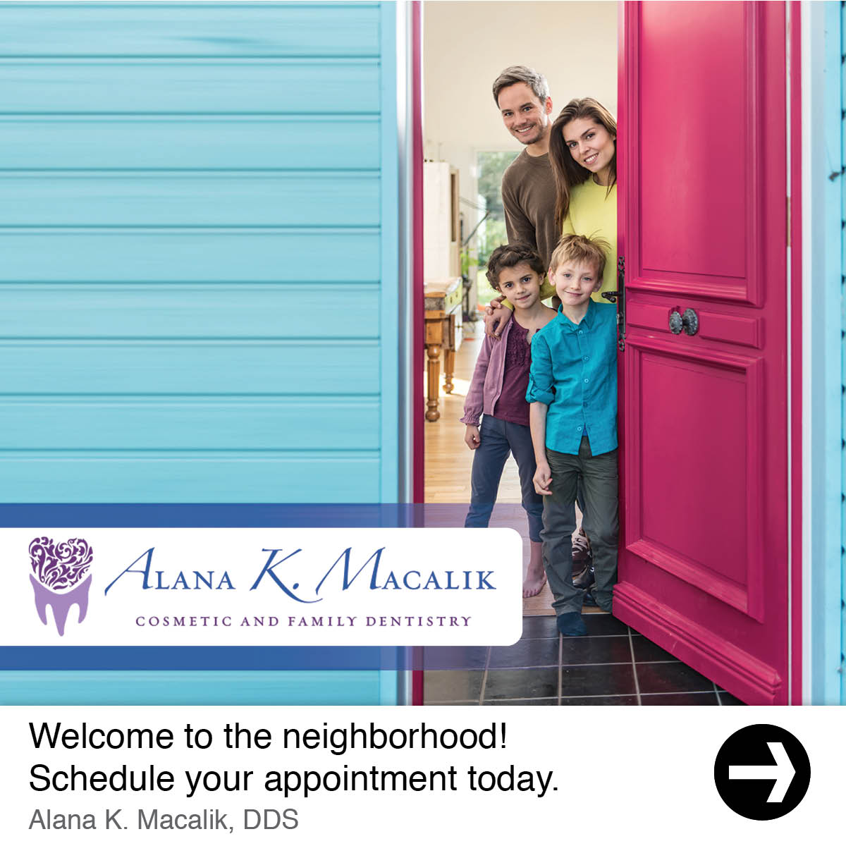 Alana Macalik Cosmetic and Family Dentistry serves families in the Arlington, TX area. Dr. Macalik wanted to advertise her dentistry services and bring in new patients, so she contacted PostcardMania for help with marketing.