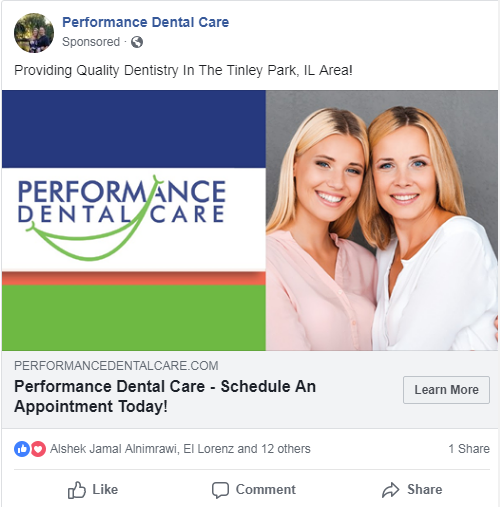 PostcardMania provided Performance Dental Care with a mailing list of nearly 37,000 prospective patients within a 3-mile radius around their practice. They sent their dental postcards to these prospects, in addition to running the automatic Everywhere Small Business ads on Facebook and Google!