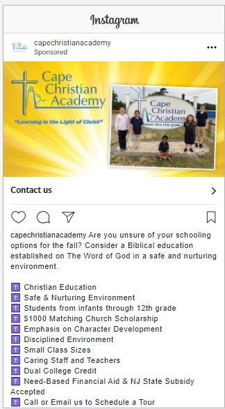 Cape Christian Academy mailed 6,000 postcards to a consumer mailing list that targeted families who make $45,000 a year or more, with children, who are Lutherans or Protestant, and live in the surrounding areas of the school. They also excluded any addresses of current or past students to avoid wasting postage.