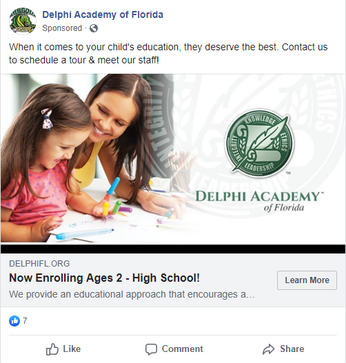 - A five-star review and testimony from a satisfied parent that has children attending the academy, giving Delphi Academy of Florida more credibility as a quality private school.