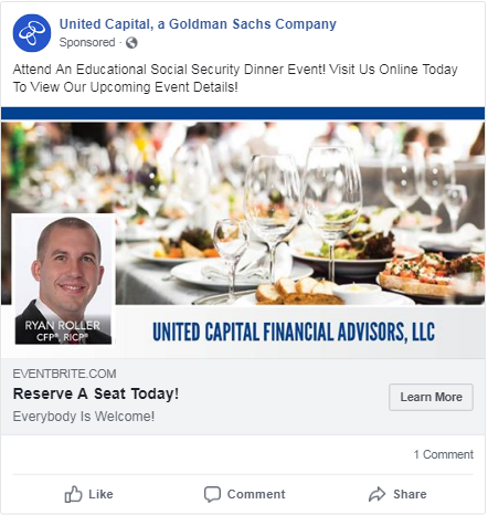United Capital based in Indianapolis, Indiana wanted to increase the number of attendees at their Social Security Benefits seminar series. They called PostcardMania to mail postcards and run coordinated Google and Facebook using PostcardMania’s Everywhere Small Business product.