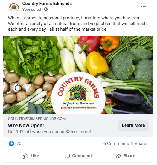 The biggest contributor to this campaign’s success was the fact that they integrated their direct mail with digital advertising. After receiving the postcard in the mail and visiting their website, every repeated follow up ad exposure helps cement Country Farms’ advertising in the recipient’s head; thus, making them more likely to stop in for a visit.