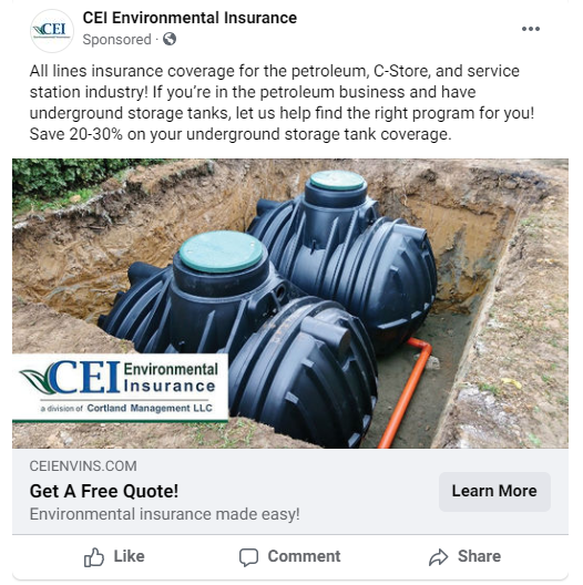 CEI Environmental Insurance, which specializes in pollution liability, operates out of Richmond, Virginia. They were looking for a creative way to let businesses with underground storage tanks know about their policies so they contacted PostcardMania for help.