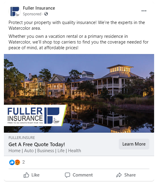 Because Fuller Insurance sells expensive insurance policy bundles, they needed to target homeowners with high-value property investments they need to protect. So, they used a mailing list of homeowners in affluent areas where beach condos and properties reside.
