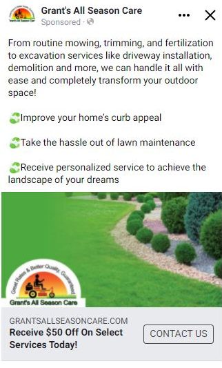 Grant’s All Season Care is a landscaping company located in Redkey, Indiana. They needed to increase their clientele, so they contacted PostcardMania for help with their marketing.