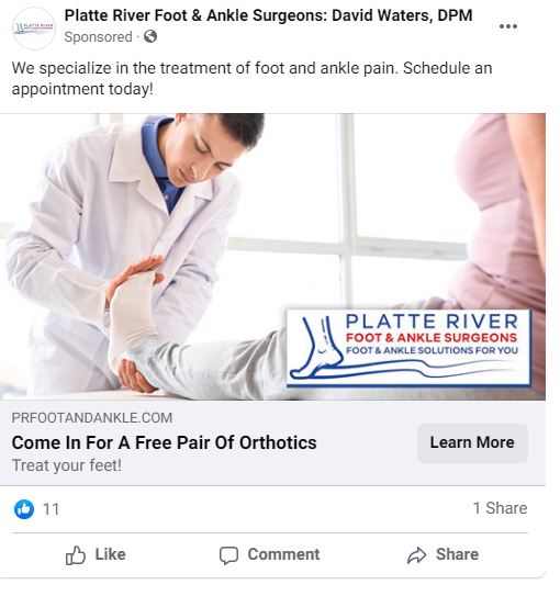 Platte River Foot & Ankle obtained 10 new patients from their Everywhere Small Business campaign!