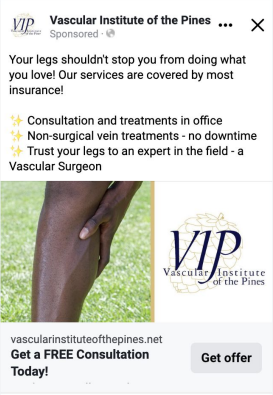 Additionally, anyone who clicked on their website or scanned the QR code and visited the website saw these ads and were reminded about the medical services Vascular Institute of the Pines was offering.
