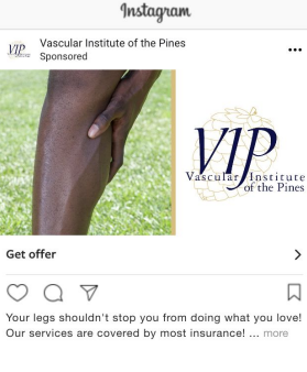 Vascular Institute of the Pines also added digital ads to their plan via PostcardMania’s Everywhere Small Business campaign, which included Facebook, Instagram, Gmail, and Google. These digital ads matched the postcard design and showed up in the feeds of the same people they targeted with the consumer mailing list.