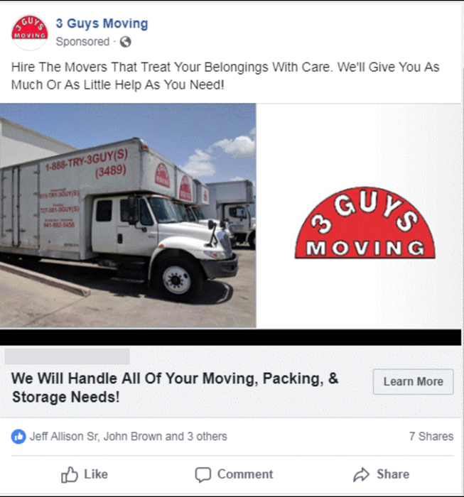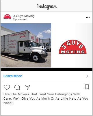 Our marketing experts helped 3 Guys Moving create an Everywhere Small Business Campaign. This combined a lead-generating postcard with automatic, online follow-up ads on Google, Facebook, and Instagram.