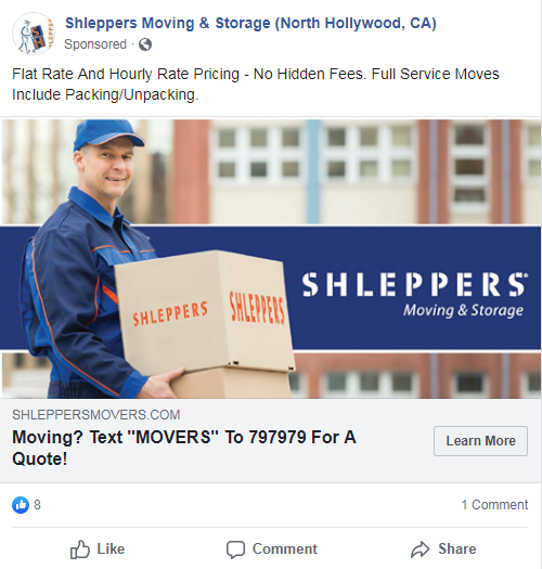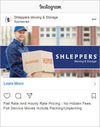 With the help of our marketing experts we suggested Shleppers Moving & Storage use our Everywhere Small Business product. This offers a postcard design with matching online Google and Facebooks ads.