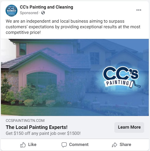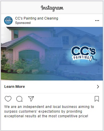 With the help of our marketing consultants, CC’s Painting decided to run a direct mail campaign bundled with Google, Instagram and Facebook advertising in our Everywhere Small Business package. You can see those advertisements above. As you’ll notice, these ads are all coordinated — that’s to ensure they maximize the impact to prospects and actually overcome the ad blindness that so many consumers have built up. (We see millions of ads every day and our subconscious is getting really good at blocking them!)