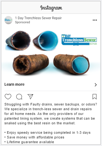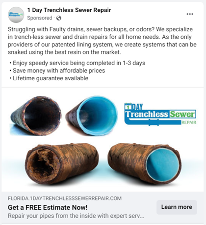 1 Day Trenchless Sewer Repair mailed out 34,052 postcards to a targeted mailing list made up of homeowners making $40,000 or more a year with homes that were built in 1980 or older in the local area.