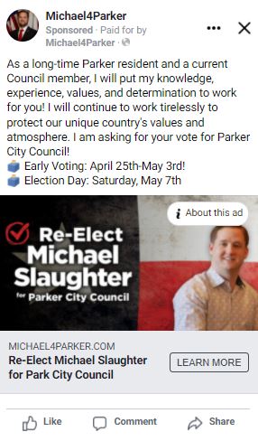 Michael Slaughter is a long-time resident of Parker, TX and a City Council member. He wanted to get re-elected onto City Council, so he decided to run a postcard marketing campaign with PostcardMania.