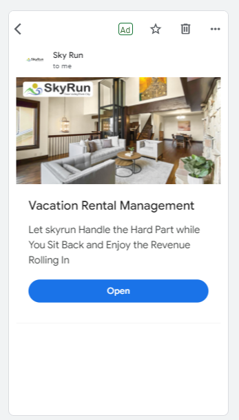 SkyRun Vacation Rentals signed up for an Everywhere Small Business campaign that combines digital ads with mailers.