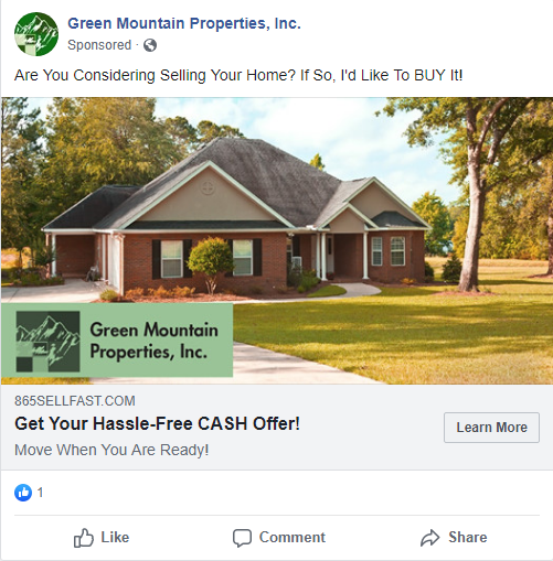 Green Mountain Properties, Inc. is a real estate investment firm located in Knoxville, Tennessee. They solicited PostcardMania’s marketing services in order to lure in new clients and increase revenue.