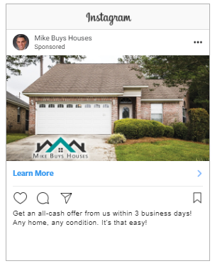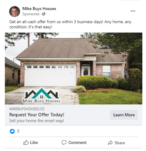 Mike Buys Houses’ postcard design had elements that have proven to be successful including: