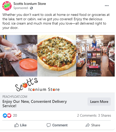 Scott’s Iconium Store is a unique business that is a hybrid of a restaurant, specialty grocer, and food delivery service, located off of a highway in Osceola, Missouri. They made a goal to increase their in-store traffic and food delivery orders, so they enlisted PostcardMania’s marketing expertise to help accomplish this feat.