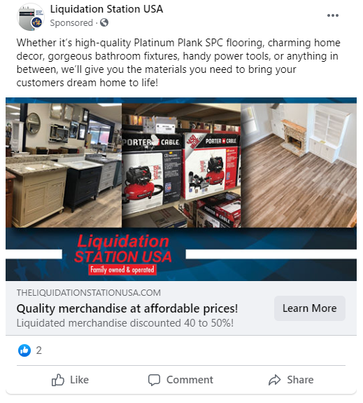 The biggest reason for this campaign’s success was their mailing list. Liquidation Station USA sells mostly home renovation supplies, so they needed to target businesses that would need them. So, their mailing list reflected this and targeted business like home remodeling contractors, home renovation contractors, flooring contractors, home Investors, and flooring installation contractors in counties near their business.