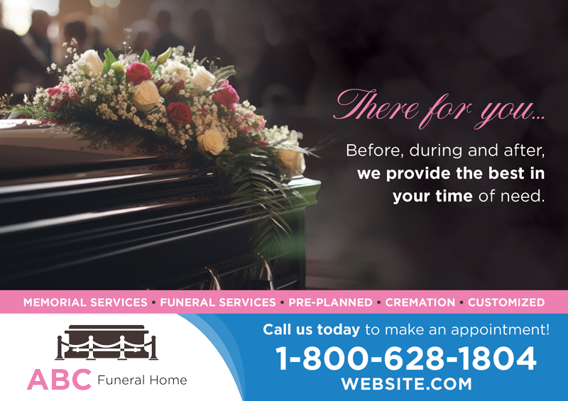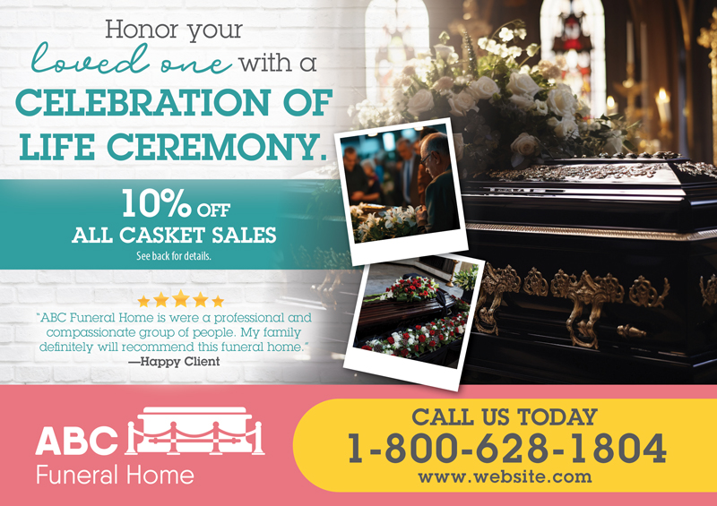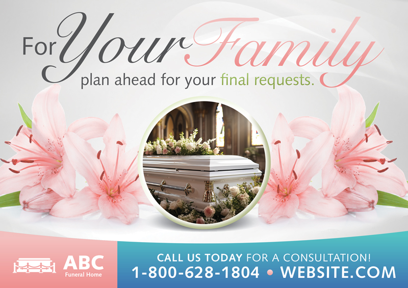Not all prospects want to think about it, but everyone will need your services at some point. We have worked with hundreds of funeral homes and burial and cremation services professionals, and we have tracked the data from all of those campaigns. Above you’ll find examples of the cards our actual clients have used with proven results. You can use any sample design you see for your own business and customize it with your logo. Or, if you prefer, we can design you a brand new card from scratch. Simply use the arrows to scroll through the gallery, and don’t forget to further your marketing education with the amazing resources at the bottom of the page.