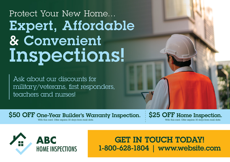 Our industry specific postcard library for the home inspection industry offers dozens of full color postcard samples to implement direct mail home inspection marketing plans to generate increased lead data. Each marketing postcard design can be used as-is or serve as a template. PostcardMania’s design department also builds custom postcards.