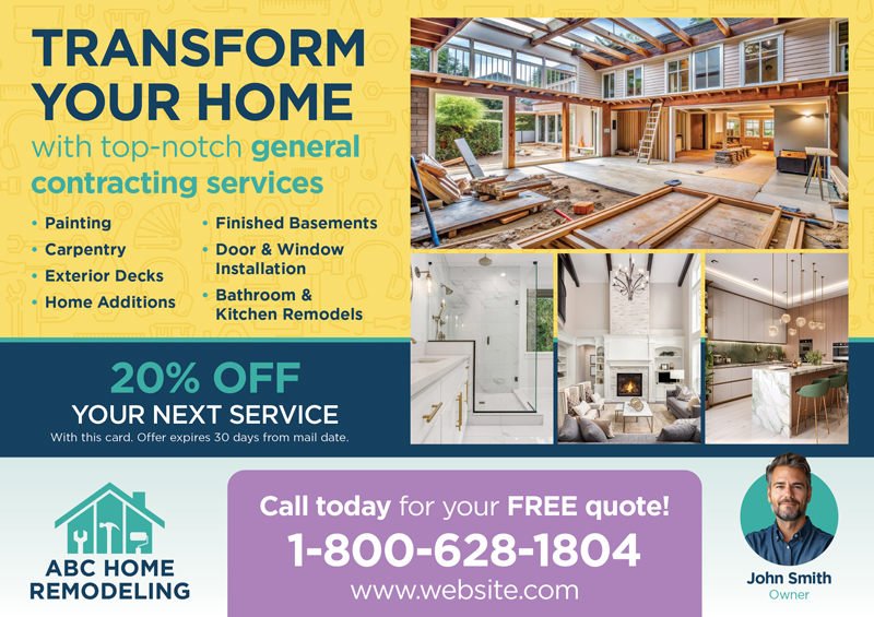 There is no need for guesswork with your marketing. We have worked with hundreds of remodeling, building, and construction contractors, and we have tracked the data from all of those campaigns. Above you’ll find examples of the cards our actual clients have used with spectacular results. You can use any design you see for your own business and customize it with your logo. Or, if you prefer, we can design you a brand new card from scratch. Simply use the arrows to scroll through the gallery, or visit these links for Job Just Completed Postcards, Proven Construction Marketing Tactics, Asphalt and Paving Postcards and Construction Postcards.