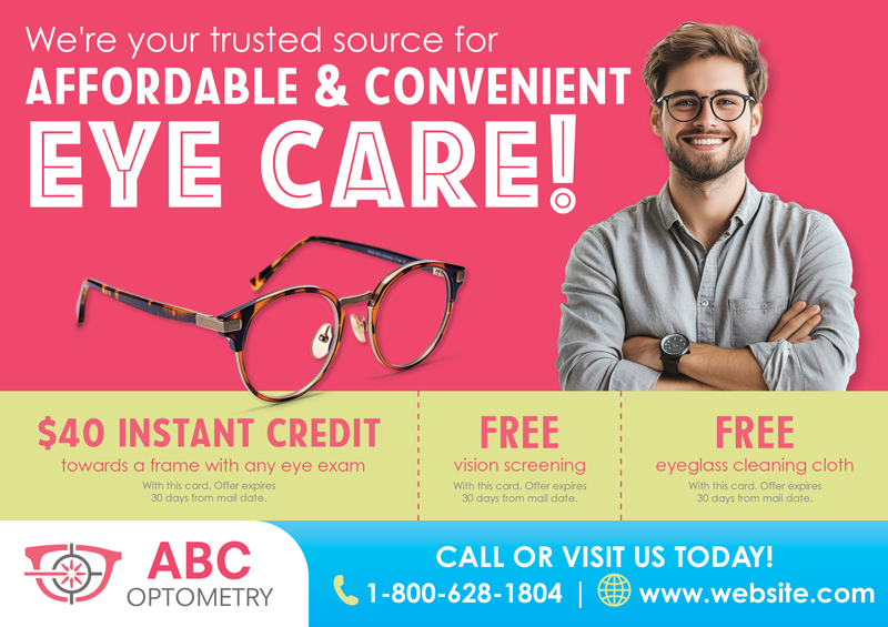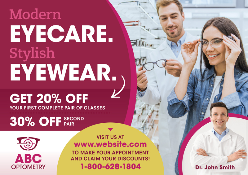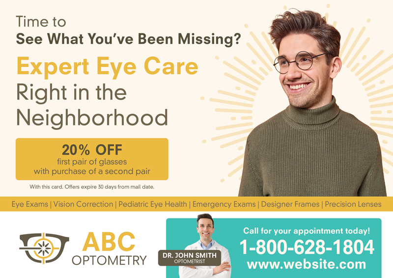 Optometry marketing strategies don’t have to be super complicated. On the contrary, we can design a simple but effective eye care marketing solution that increases your annual revenue. If you need optometrist advertising ideas, all you have to do is scroll through the optometry postcard designs and see what works best for you.