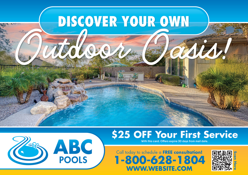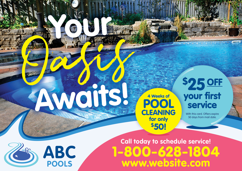 Pool service marketing is a necessity in areas where homeowners need to maintain their properties. Instead of allowing your competitors to reach these homeowners first, mail pool services postcards and start receiving leads first!