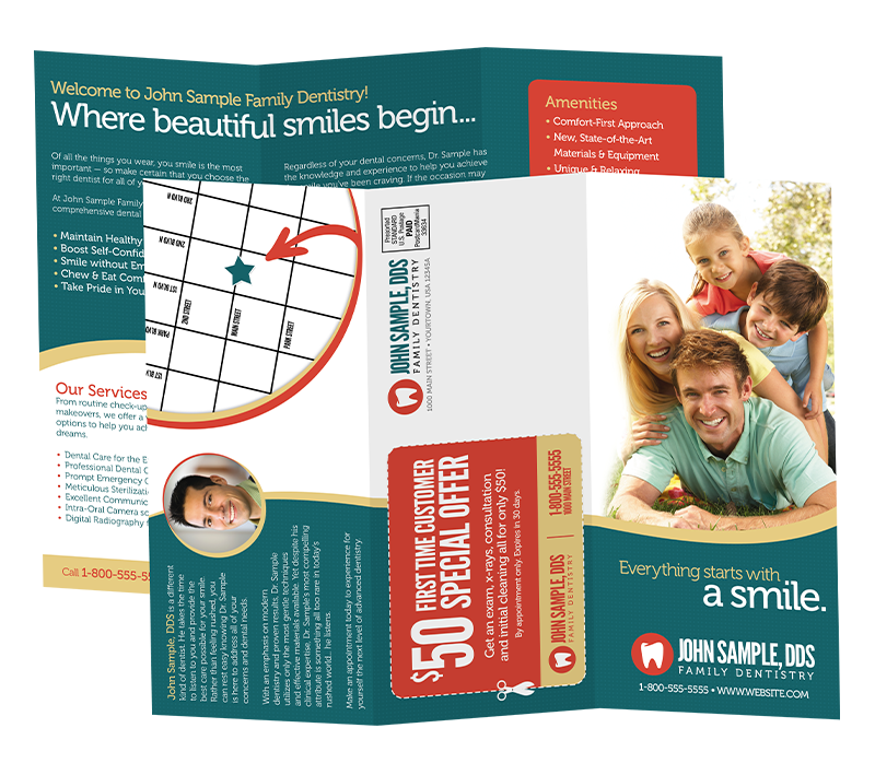 This folded postcard mailer is better for businesses that need to educate their prospects with details before delivering their marketing message.