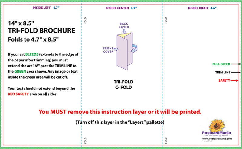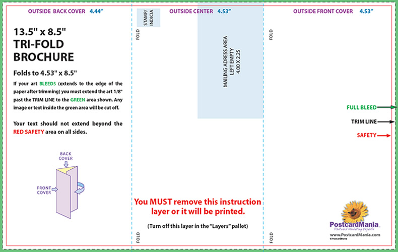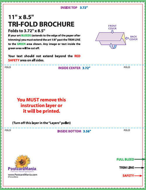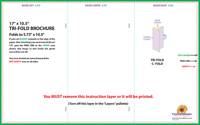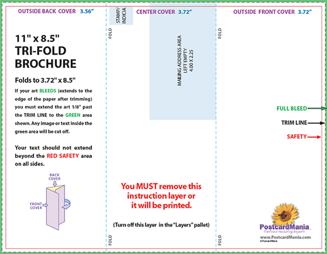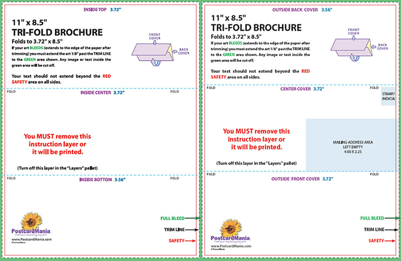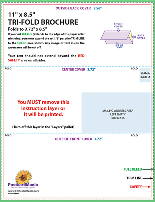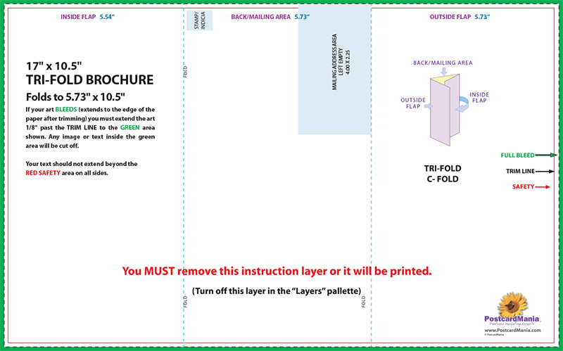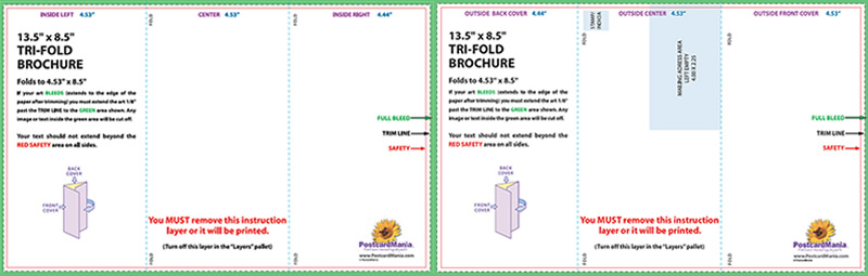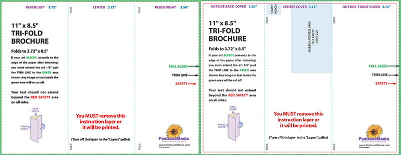 Can't fit it all on a postcard layout? Download a brochure template below. Use these formats as a guide when you're designing your piece in InDesign, Photoshop or Illustrator.