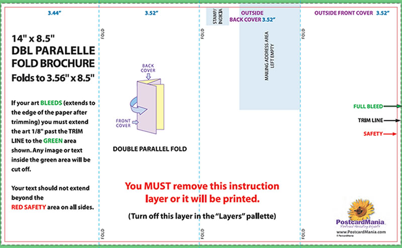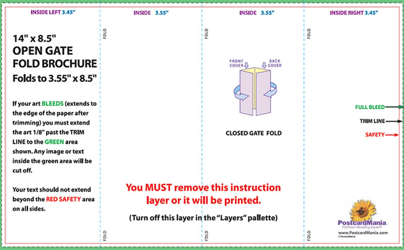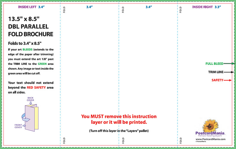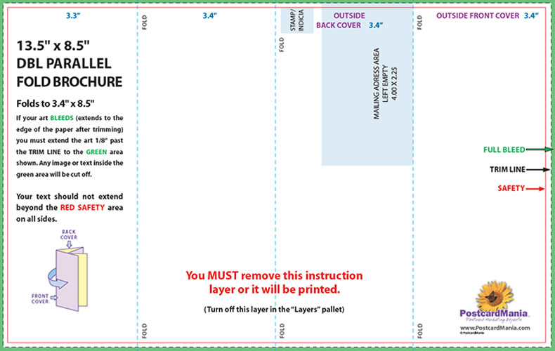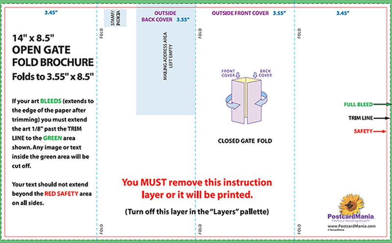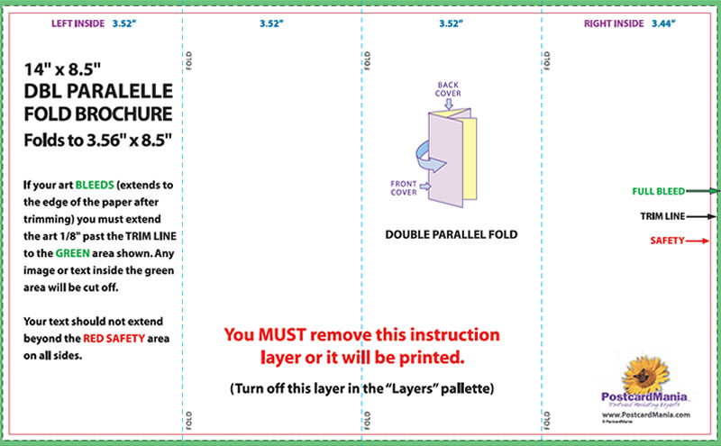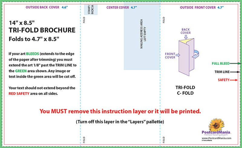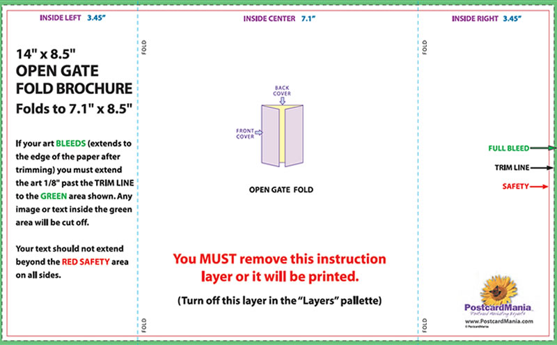 Can't fit it all on a postcard layout? Download a brochure template below. Use these formats as a guide when you're designing your piece in InDesign, Photoshop or Illustrator.